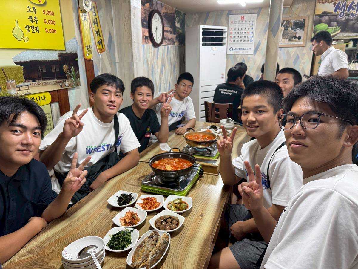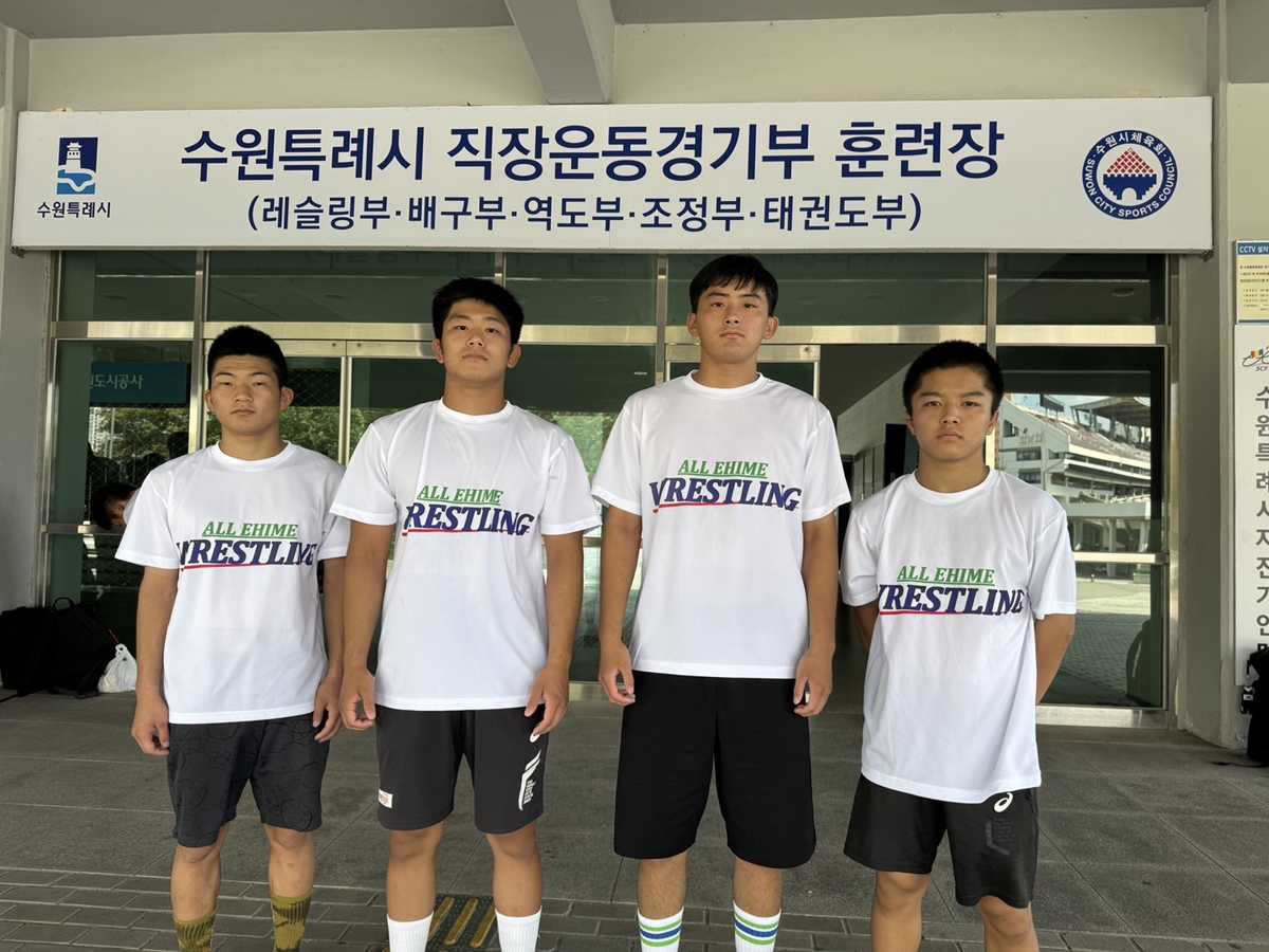 韓国遠征に参加する今治工業高校レスリング部と愛媛県高校生、韓国の高校生のために、